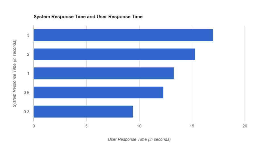 Productivity increases when a computer and it’s user interacts at a pace (<400ms), where neither has to wait on the other. This is also where progress bars and animations can help make wait times more tolerable.